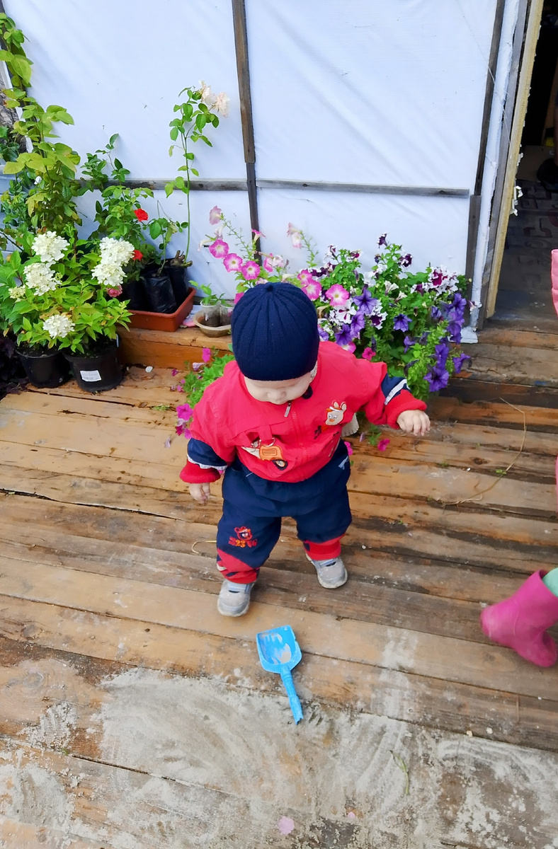 Хочется оставить небольшую заметку про воскресенье 20 июля, несмотря на то что я сегодня загружена от максимуму, пока сижу в стоматологии решила начать писать, просто потому как есть чем поделиться. День у нас выдался довольно не плохой, почти всё что с мужем запланировали выполнили, несмотря на ледяной пронизывающий ветер на улице, обратите внимание на фотографию Арсюшки, в куртке, теплых штанах, шарфе и шапке ребенок гуляет в июле, да так бывает .. Муж в течении дня начал выставлять основу для розария, будем поднимать клумбу на высоту бетонного поребрика, в связи с высоким уровнем подземных вод, для многолетних цветов в наших условиях это необходимость. Пока Арсюшка после прогулки хорошо и долго спал я занималась заготовками на зиму время идёт, а я ещё ничего не делала Укроп оббираю тонкие веточки режу пересыпаю в бутылки из под молоко удобно его так хранить не рассыпается ничего , а толстые ветки режу в контейнер, очень вкусно с ними наваривать куриный бульон, перья зелёного лука