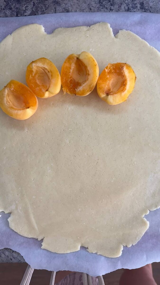 🍑от края отступить 3 см и все заполнить половинками абрикоса. Так сочнее и вкуснее.