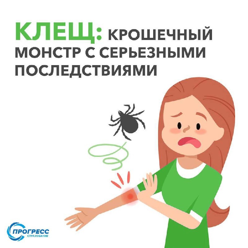 🪲Клещ: крошечный монстр с серьезными последствиями ☀️Лето – время пикников, прогулок и активного отдыха на природе. Но, к сожалению, вместе с теплом приходит и опасность – клещи. Эти крошечные паразиты могут стать причиной серьезных заболеваний, которые могут нанести непоправимый вред здоровью.❤️🩹 Не доверяйте случаю, лучше доверьтесь надежному страховому полису от укуса клеща! Мы поможем с его оформлением и бесплатно доставим всю документацию на дом!🚗 Звоните 📞8(800)600-52-53 Пишите 📨info@sa-progress.ru 💙@sa_progress1
