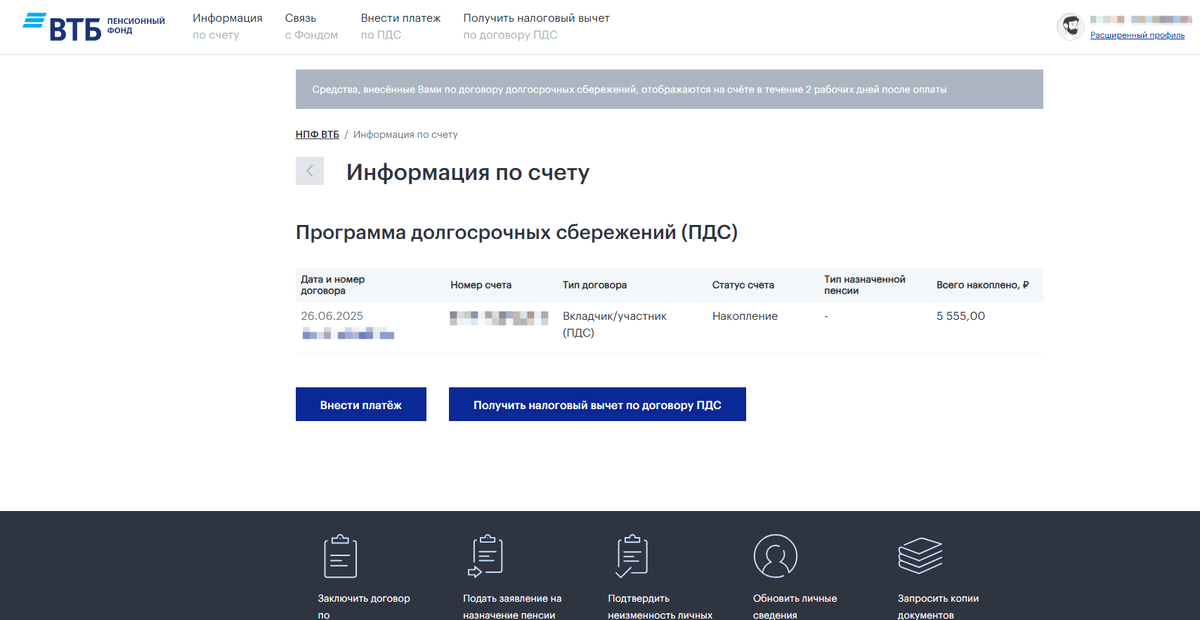 Продолжаю накопления на ПДС в ВТБ. Теперь - 5555 там уже.