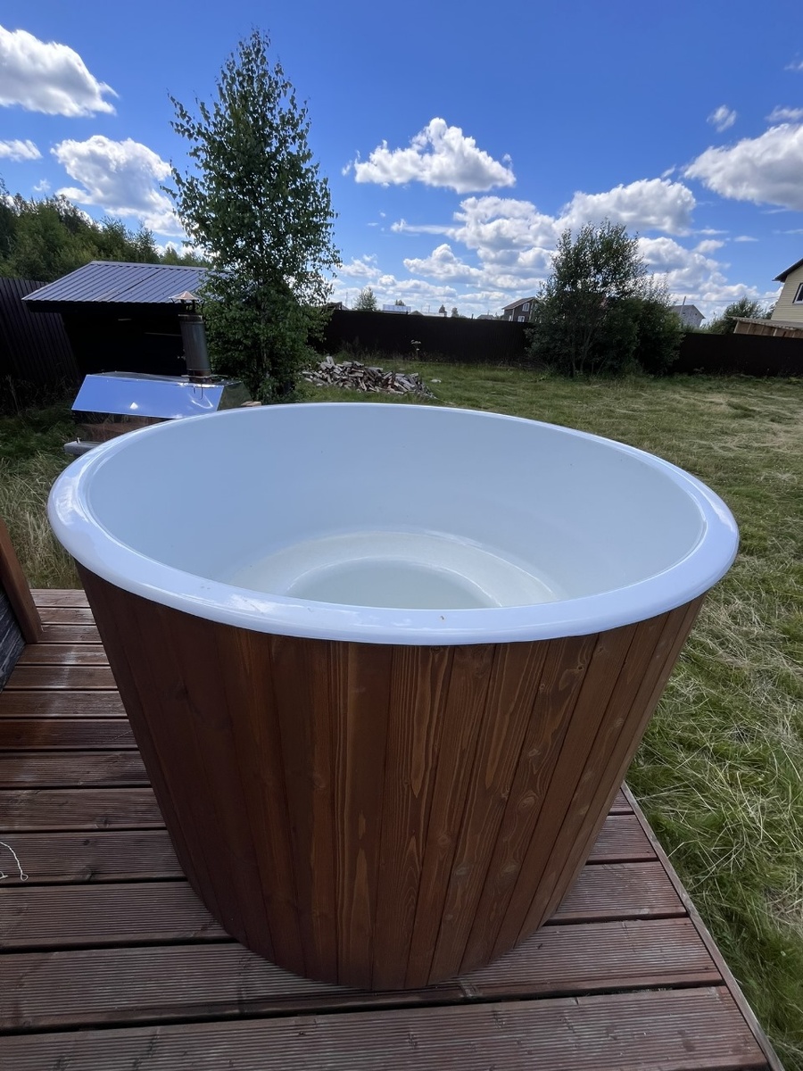С баней от «Костромского бондаря» я уже давно знаком — пользуюсь больше года, всё устраивает. Сделана качественно, продумана до мелочей, радует каждую баню. Поэтому когда решил добавить купель — не стал искать других производителей, снова обратился к ним. К выбору подошёл серьёзно — хотелось, чтобы купель была не просто "для вида", а действительно удобной, долговечной и вписывалась в участок. Рассматривал четыре варианта: Купель изготовили и привезли в срок. Сборка аккуратная, всё подогнано чётко. Установили на заранее подготовленную площадку — проблем не возникло. Внутри — гладкое покрытие, приятно садиться даже без подстилки. Снаружи — отделка под дерево, хорошо сочетается с баней. После парной — погружение в прохладную воду. Сначала непривычно, а потом начинаешь получать настоящее удовольствие. Отлично бодрит и дополняет банный ритуал. Если вы, как и я, ищете купель надолго, без хлопот с уходом, — смело рекомендую композитную модель. А если хотите надёжного производителя — «Костром