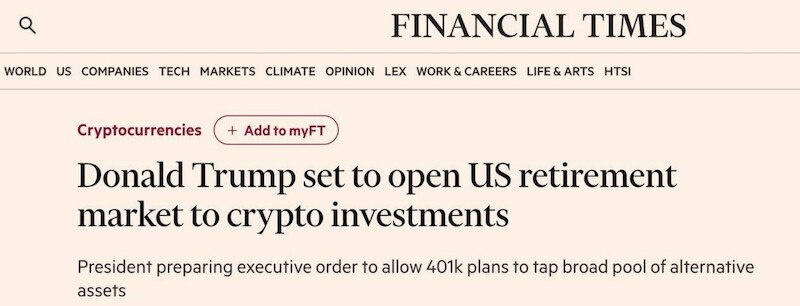 🇺🇸 Трамп открывает двери для криптовалют и золота в пенсионные планы США
