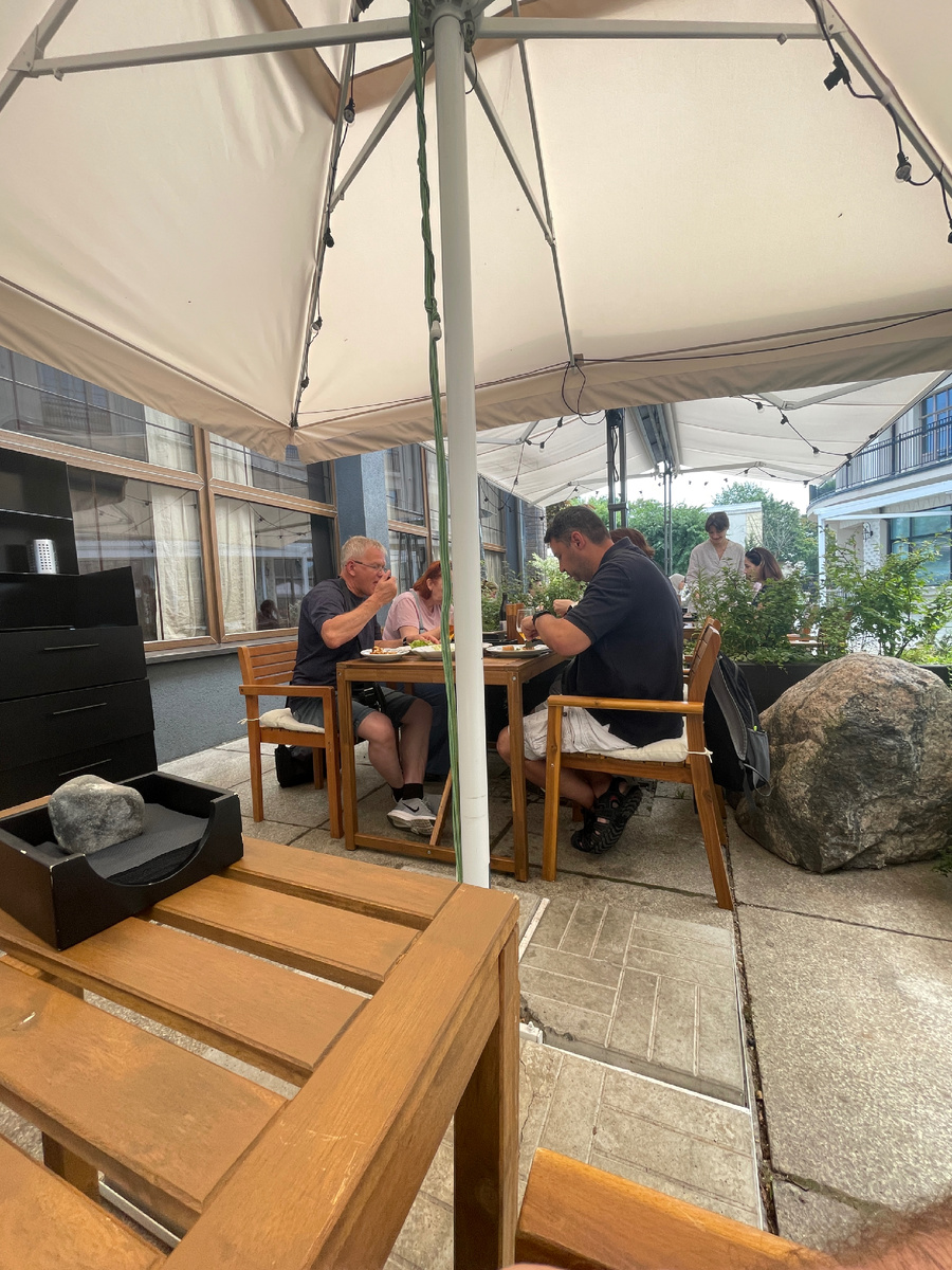 Попасть сюда удалось только с третьего раза. Прошлые попытки закончились ничем, последняя около года назад. Похоже ранее официанты не очень то и хотели, чтобы я пообедал в этом месте. Может не везло, но хочется верить, что сменилась команда. Еда вкусная, и, хоть и довольно простая, с очень хорошей подачей. Не буду спойлерить, подача рыбного сливочного супа оставила не менее прекрасное впечатление, чем сам суп, уха, весьма недурственная уха. В общем, ресторан у памятника Ленину весьма и весьма рекомендую к посещению. И возьмите уху обязательно!