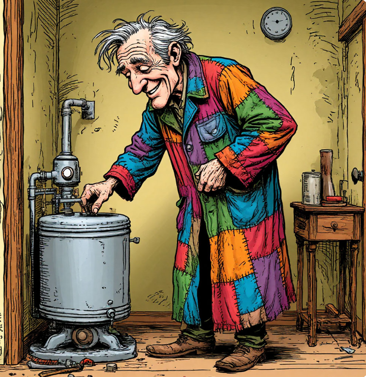 На следующее утро Сонечка дала Антошке двойную порцию зелья, как обычно — и тут случилось забавное: вместо того чтобы сосредоточиться на ремонте, он начал странно вертеться вокруг своей мастерской и пытаться "починить" свои инструменты руками как кукла-робот или танцор-акробат.