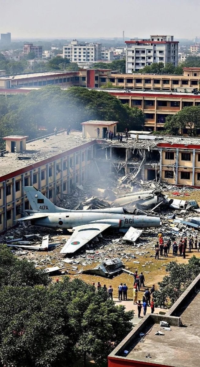 19 человек погибли и больше сотни пострадали из-за падения учебного самолета F-7 BGI у входа в колледж в Бангладеш
