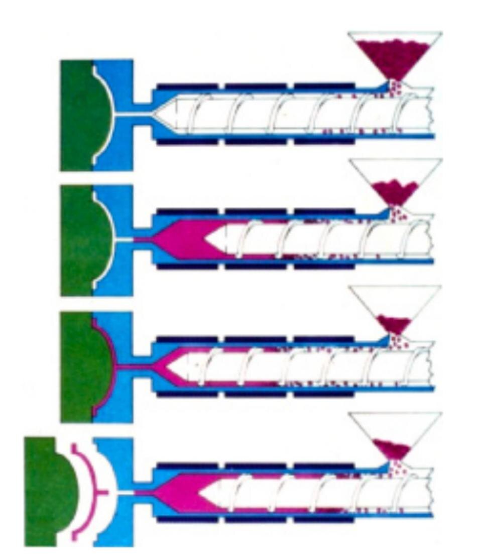 Литье под давлением — это высокотехнологичный процесс, который включает несколько ключевых этапов. ✅Подача полимера: Полимерный материал загружается в бункер и попадает к пластифицирующему шнеку. ✅Пластификация: Шнек перемещает полимер и нагревает его до расплавленного состояния. ✅Впрыск: Шнек движется вперед под давлением для заполнения формы расплавленным материалом. Этап включает: - Заполнение: Полость формы заполняется расплавом. - Упаковка: Добавляется дополнительный материал для компенсации усадки. - Выдержка: Поддерживается давление для затвердевания полимера. ✅Извлечение: Как только пластик остыл до безопасной температуры, отформованная деталь извлекается, а форма готовится к следующему циклу. 💡Правильно настроенные профили давления и времени помогают контролировать качество детали и обеспечивать воспроизводимость изделий. 🤓Важно помнить: • Процесс может подключаться к системе охлаждения, если используется термопласт, или может потребоваться система отверждения для термор