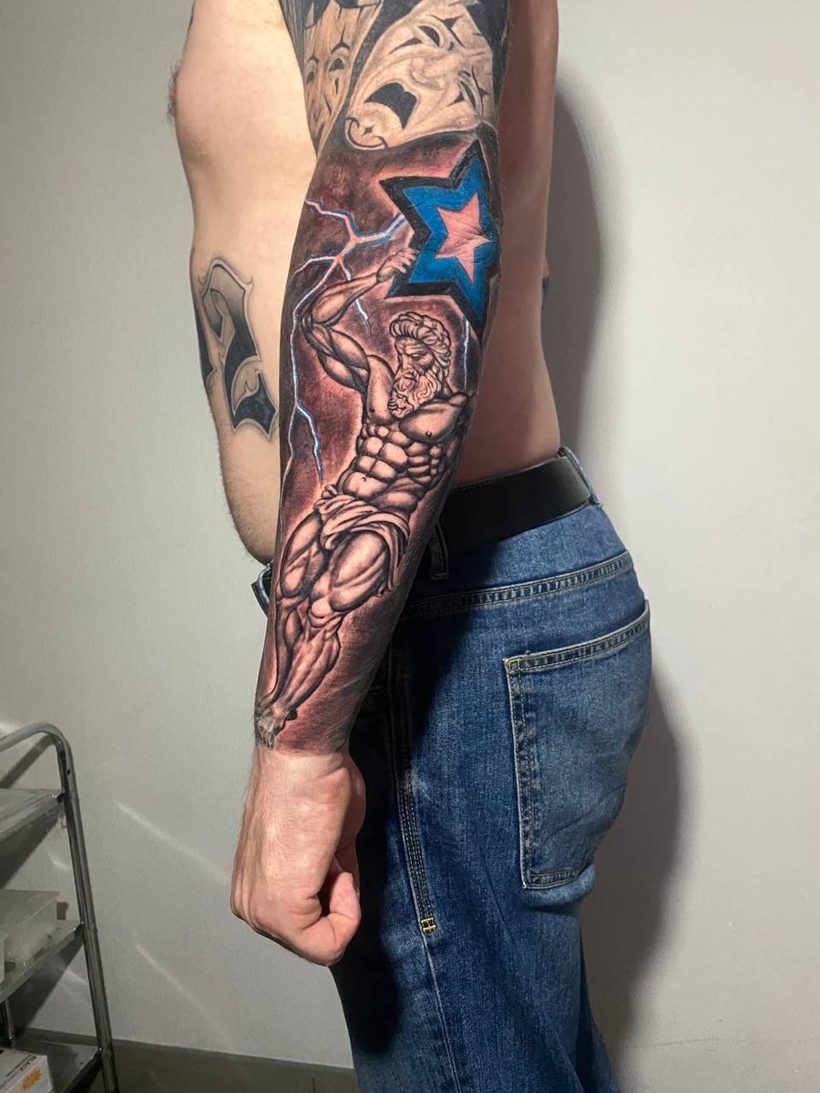 Ещё одна свежая работа, прислал подписчик из самого красивого города 🫶 Вот отсюда был эскиз Атланта со звездой, вписался отлично 🙏 #татумасетр #принтподписчика #тату #татуировка #эскиз #татуподписчика