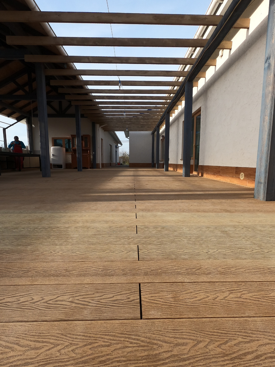 Продолжаем рассказывать о популярных материалах для покрытия во дворе. Идеальное пространство — не только красивое и уютное, но и учитывающее потребности всех членов семьи. Поэтому еще на этапе проектирования важно продумать зонирование и варианты материалов для благоустройства террасы, зоны вокруг бассейна, детской игровой площадки, зелёной зоны. 1. Террасная доска (декинг) - уже ставший популярным материал для обустройства открытых пространств (террас, веранд и беседок). Он не деформируется, не боится перепада температур, выдерживает нагрузку до 500 кг на кв.м. Доска из ДПК сделана из смеси древесных волокон и полимеров. ДПК так и расшифровывается: «древесно-полимерный композит». Ухаживать за доской для террасы очень просто: специальные моющие средства не потребуются, вполне хватит обычной мыльной воды и жесткой щетки. Монтаж террасной доски (декинга) осуществляется на металлокаркас или каркас из ДПК. 2. Каменный ковер - состоит из натуральных камней, покрытых бесцветным алифатически
