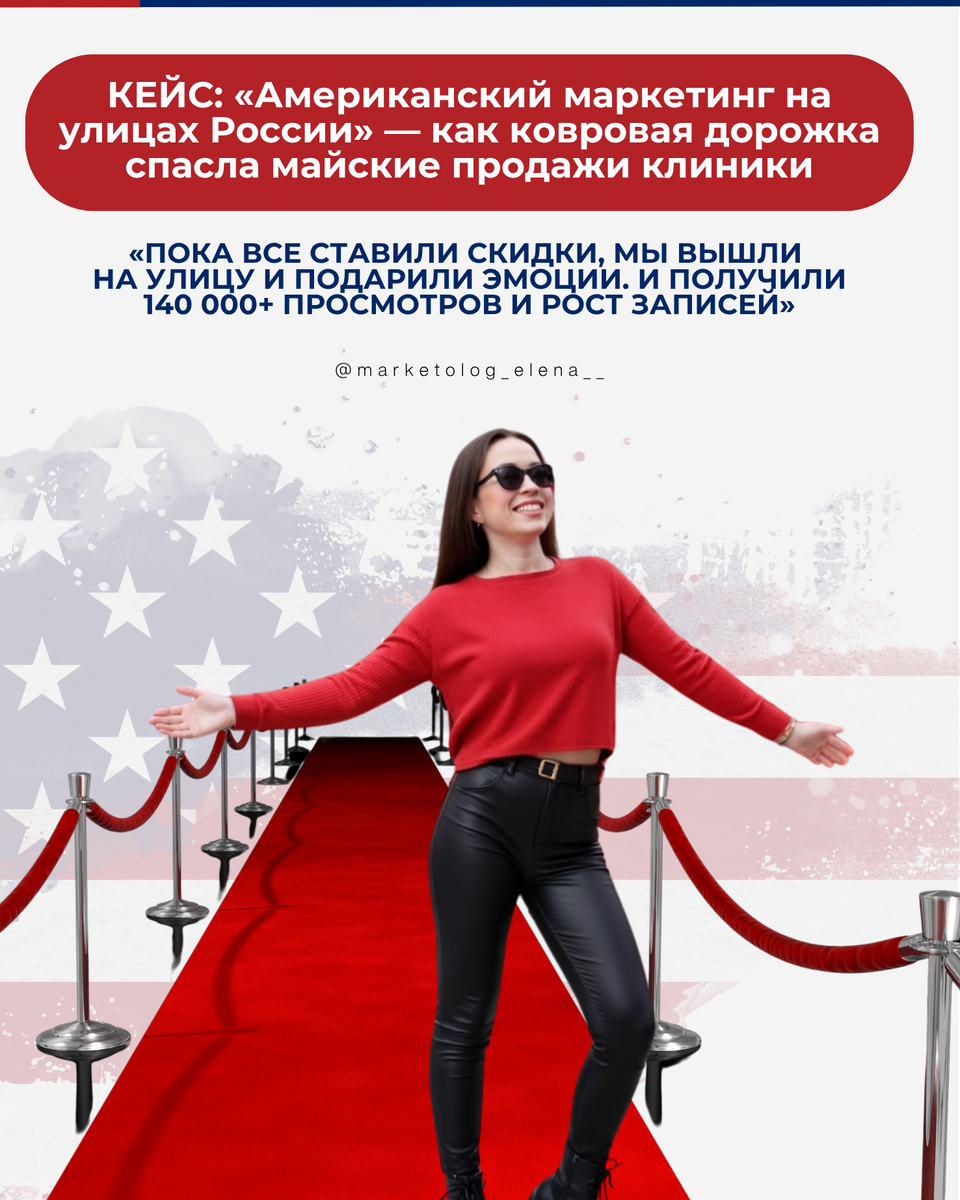 КЕЙС: «Американский маркетинг на улицах России» - как ковровая дорожка спасла майские продажи клиники