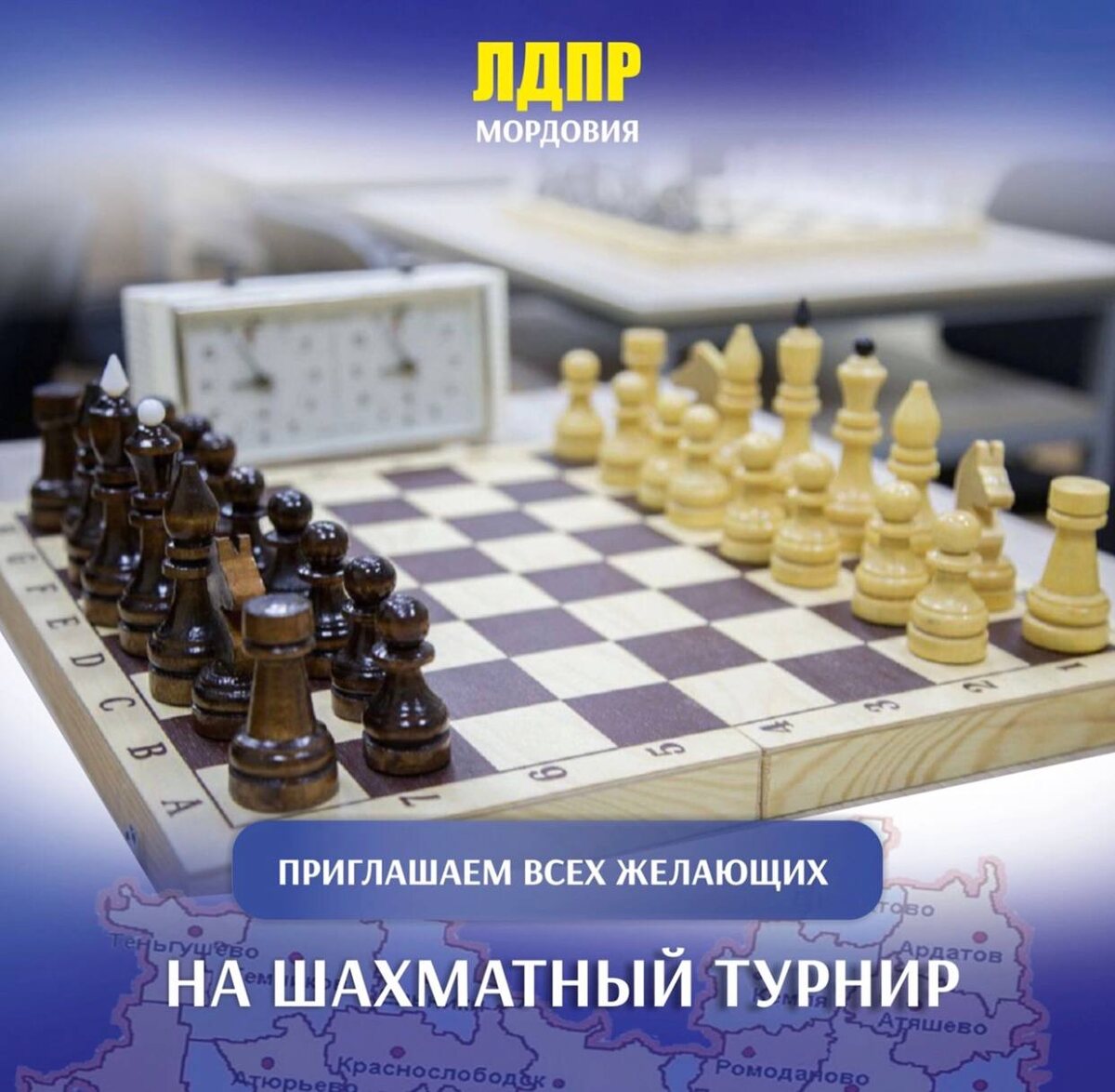 🔵 ШАХМАТНЫЙ ТУРНИР ЛДПР В САРАНСКЕ! Мордовское региональное отделение ЛДПР приглашает всех любителей шахмат на захватывающий турнир! ➡ Дата: 24 июля 2025 года ➡ Начало: 18:00 ➡ Место: Парк культуры и отдыха им. А.С. Пушкина Приглашаем принять участие в качестве игрока или поддержать участников в роли зрителя! 💙Главный судья: Просвирин Алексей Алексеевич 💙Регистрация: По телефону: 8-927-170-95-35 (личный звонок, WhatsApp, Telegram) Регистрация на месте возможна только при наличии свободных мест или неявке заранее заявившихся до 17:45. 💙Формат турнира: Швейцарская система, 7 туров Контроль времени: 5 минут + 2 секунды на ход каждому игроку 💙Награждение в номинациях: 1 место (общий зачет) 2 место (общий зачет) 3 место (общий зачет) «Лучший юный шахматист» (до 9 лет) «Лучший шахматист среди школьников (10-18 лет)» «Лучший шахматист старшего поколения (60 и старше)» «Лучший шахматист-женщина» Приходите, чтобы сразиться в интеллектуальной битве, получить ценный опыт и завоевать