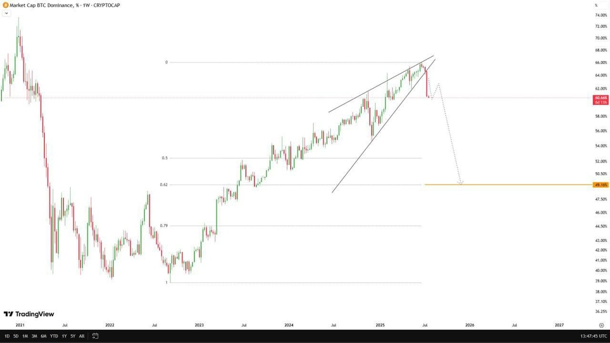 #BTC.D На этой неделе индекс доминирования Биткоина показывает самую высокую медвежью сессию по объему с февраля 2021 года