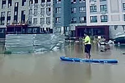 Житель ЖК в Подмосковье поплыл на парковку на сапборде и попал на видео