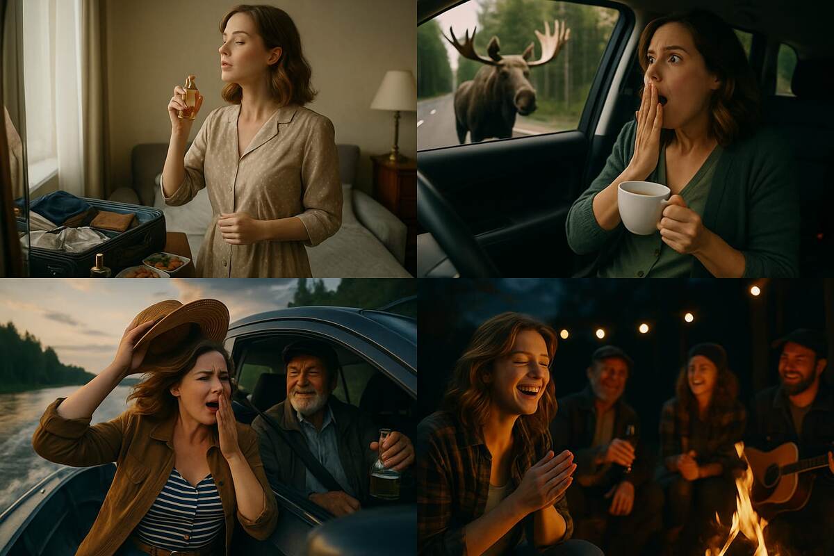 Ехала она, ехала аж целых 5 часов. Самый запоминающийся момент — это встреча с лосем, и слава богу, только глазами! Это было эпично, как показывают в фильмах: он стоит, она едет, их глаза встретились и не отпускали друг друга взглядом, пока он, как лось, не побежал от неё (и слава богу, что не к ней). Она испуганно заверещала: