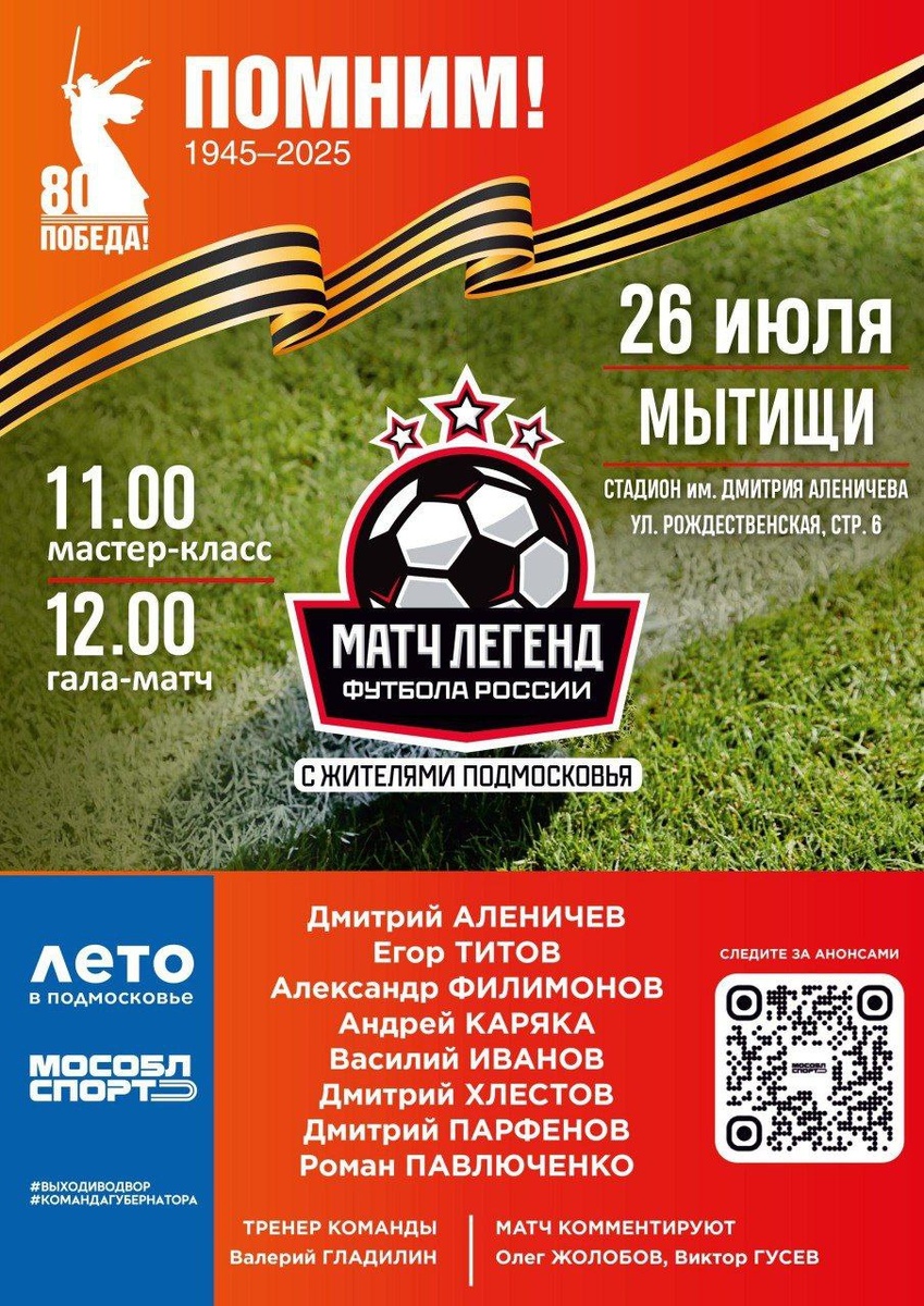 Подробности по Матчу Легенд с жителями Подмосковья, который пройдет в Мытищах 26 июля!