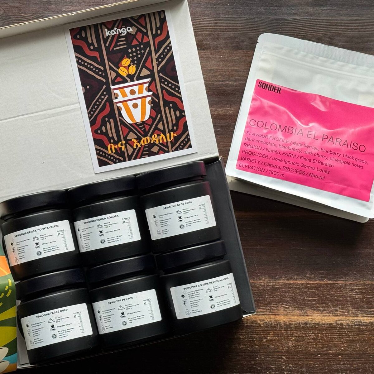 🗒 Приехали Kanga и Sonder Приехало много вкусноты! Во-первых это сэмпл-бокс от Kanga Roasters с шестью лотами из Эфиопии. Каждый лот бережно упакован в увесистую баночку и фантастичски пахнет. И во-вторых Колумбия с фермы Эль Параисо от сербского обжарщика Sonder. С этой фермы всегда что-то интересное приезжает, а тут ещё мне повезло попробовать обжарщика, про которого слышал в кофейных чатах. @Кофезавр