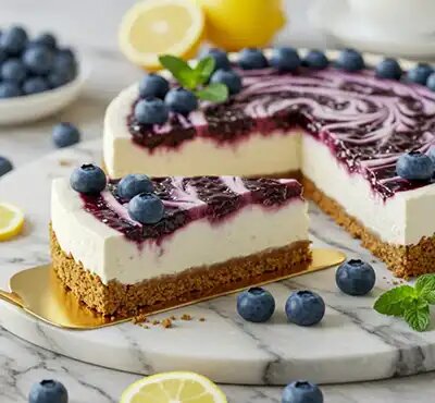 Сливочный чизкейк с ярким черничным компотом на маслянистой основе из крекеров. Идеально подходит для торжеств, летних вечеринок или просто так! Шелковисто-гладкая текстура с пикантным черничным послевкусием. Можно приготовить заранее - на следующий день вкус будет еще лучше. Потрясающая подача – украсьте свежими ягодами и мятой.