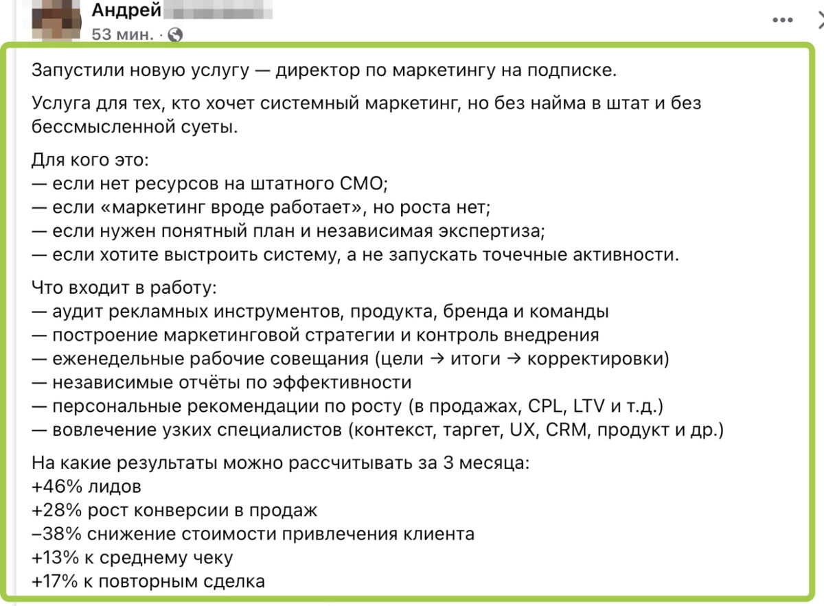 Как думаете - это вообще рабочая тема? Директор по маркетингу по подписке? Речь о том, что вы, условно, арендуете специалиста, который за 3 месяца добивается результатов, как на картинке.