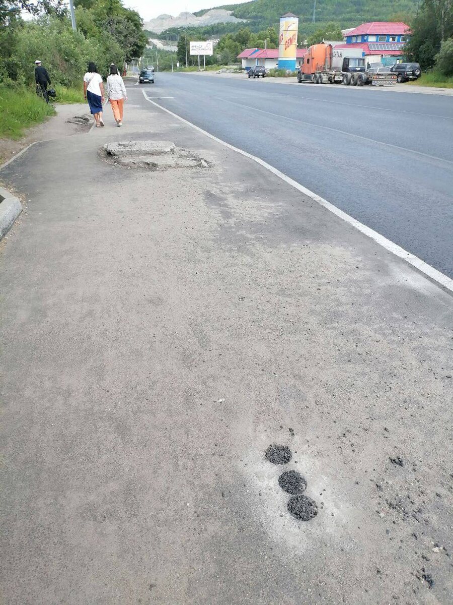 #ОтЧитателей ❄ «Арктического Обозревателя» И хотя #ГородскиеВторники ещё только завтра, уже сегодня читатели «АО» делятся фотографиями «благоустройства». На фото - законченный ремонт тротуаров на выезде из Мурманска в сторону Североморска. Уже и верхний слой асфальта положили, и даже пробы взяли. И обратите внимание, как бережно подрядчик обошёл нагромождение бетонных плит теплового колодца!