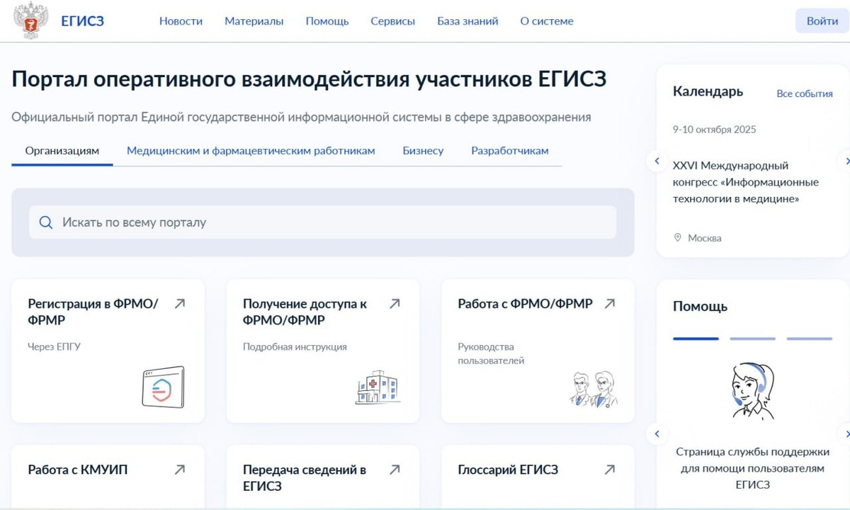 Портал оперативного взаимодействия участников ЕГИСЗ приобрел новый интерфейс и полезный функционал. В числе нововведений — добавление информационных разделов: ✔️«Справочные материалы», где можно найти всю необходимую информацию по применению ЕГИСЗ; ✔️«Аналитические материалы», который включает отчеты, доклады, инфографики и исследования по различным показателям системы здравоохранения; ✔️«Библиотека практик», где можно изучить лучшие практики здравоохранения в сфере цифровизации. Также в «Базе знаний» собраны медицинские информационные системы, которые работают с ЕГИСЗ, и представлен подробный каталог медицинских изделий, созданных с помощью ИИ-технологий. На главной странице портала справа вы найдете Календарь событий, в котором размещена информация о предстоящем XXVI Международном конгрессе «Информационные технологии в медицине». P.S. Недавно на портале была опубликована инструкция по корректному заполнению сведений в карточке организации в ФРМО.