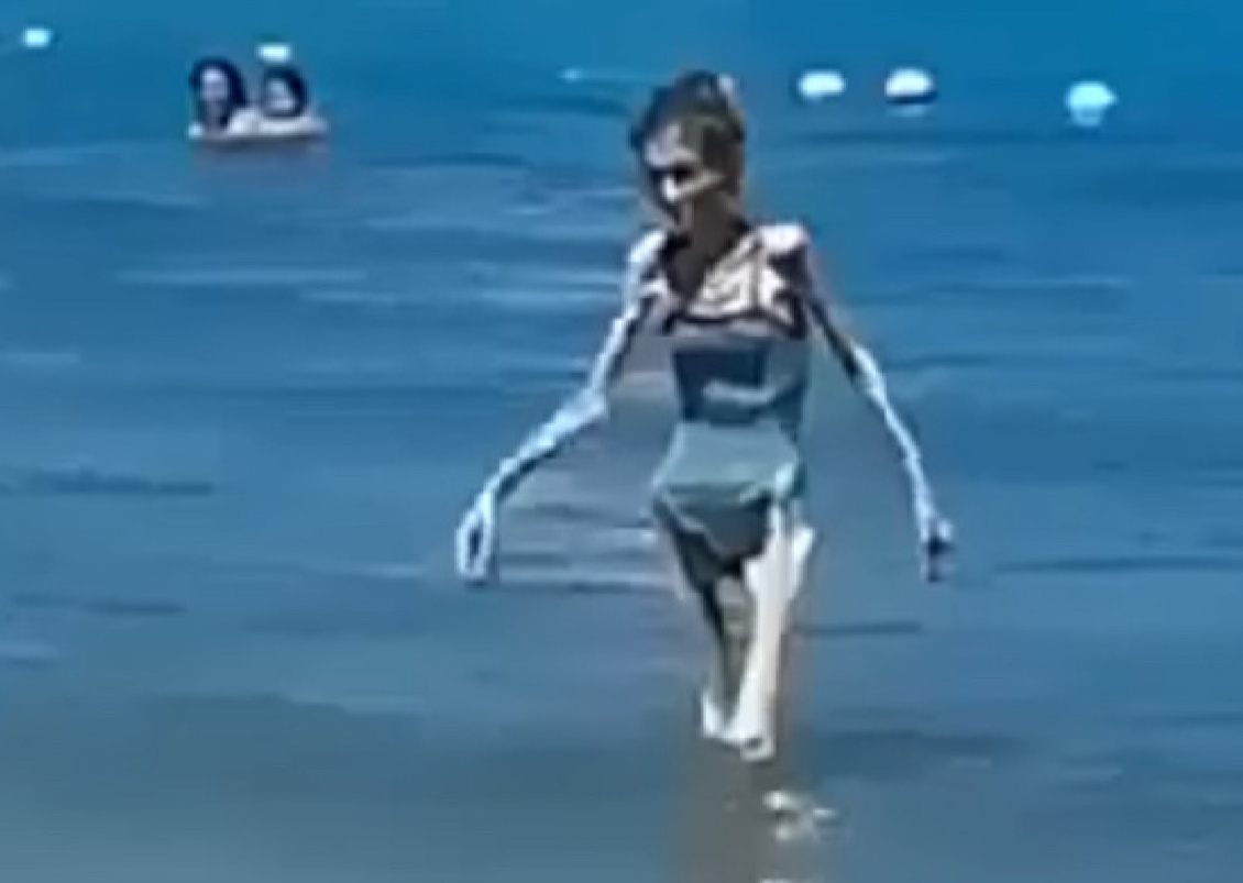 Когда она вышла из моря, отдыхающие были буквально оцепеневшими от ужаса. Её тело было настолько истощенным, что напоминало живой скелет, обтянутый кожей. Создавалось впечатление, что перед ними — ходячий призрак или мумия, чудом оказавшаяся на пляже.