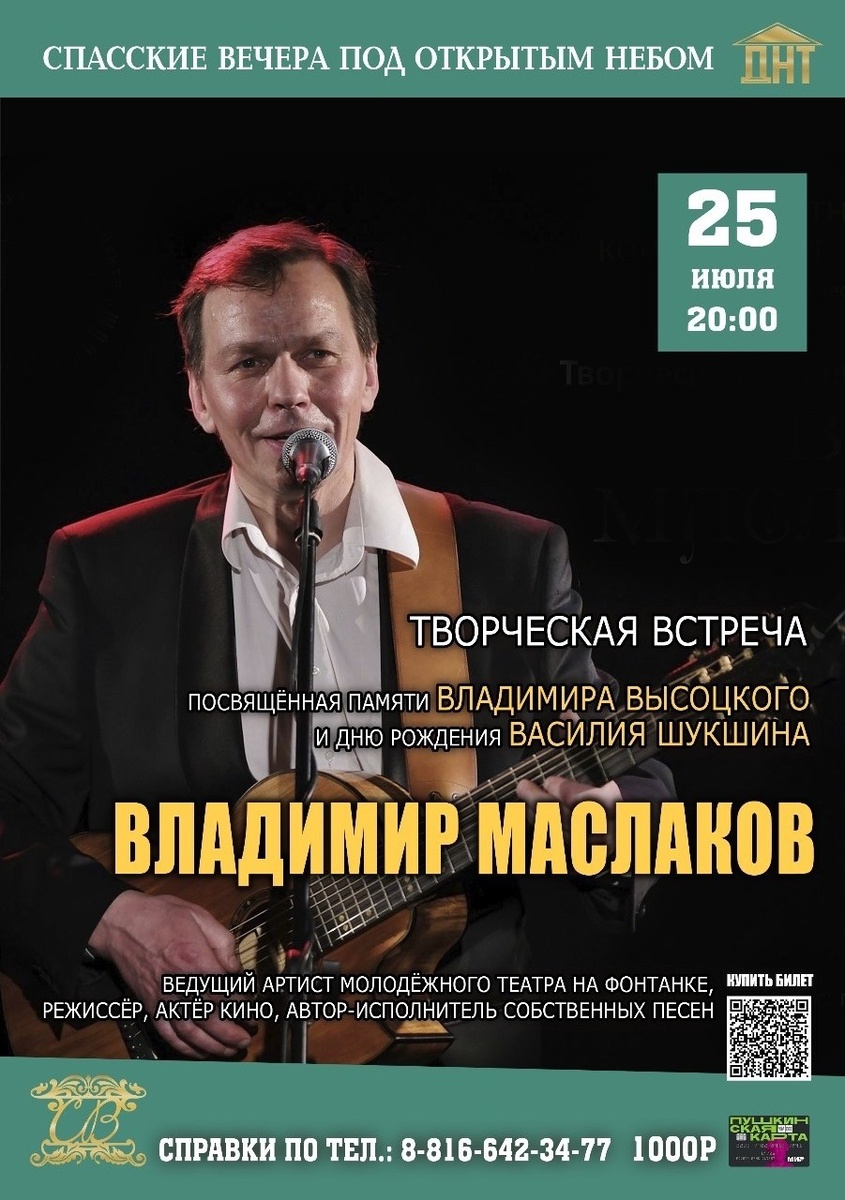 В ДНТ 25 июня 20.00 приглашаем вас посетить концерт Владимира Маслакова