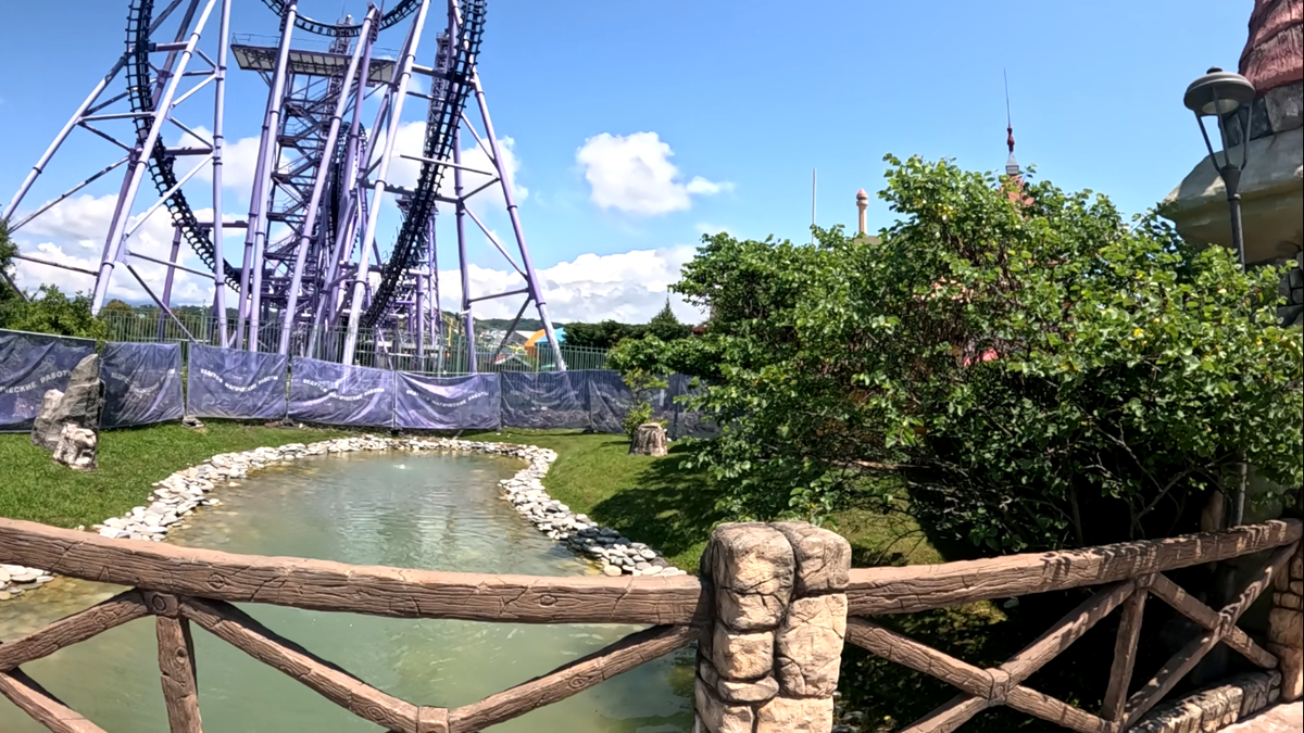 Чтобы попасть на аттракцион Богатырские гонки, нужно выйти из парка ( если, что по билетам можно войти обратно). Туда мы дошли уже в девятом часу вечера.