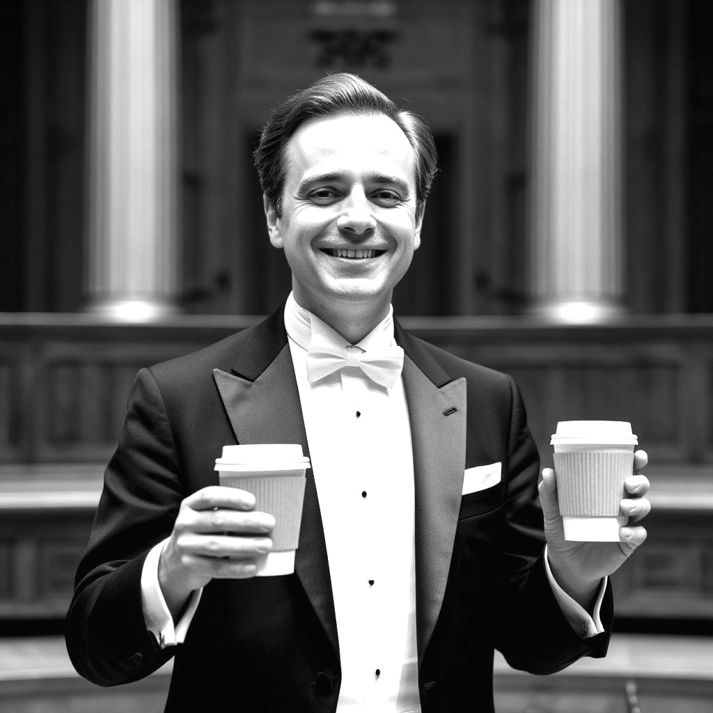 После концерта — чтобы не заснуть в фойе, обняв цветы от неизвестной дамы. 🧠 Маэстро без кофе — это уже не маэстро. Это просто человек в чёрной одежде с глазами «где я, кто вы и почему кларнет звучит, как чайник?» У каждого дирижёра свой стиль: