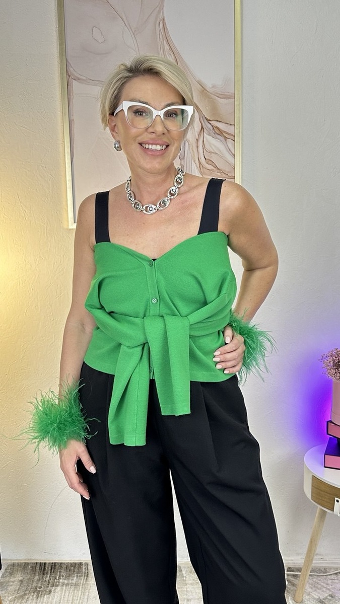 Модель прямого кроя из смесовой ткани (хлопок, полиэстер, спандекс) с капюшоном. Яркий зеленый оттенок и контрастная вышивка создают динамичный образ.