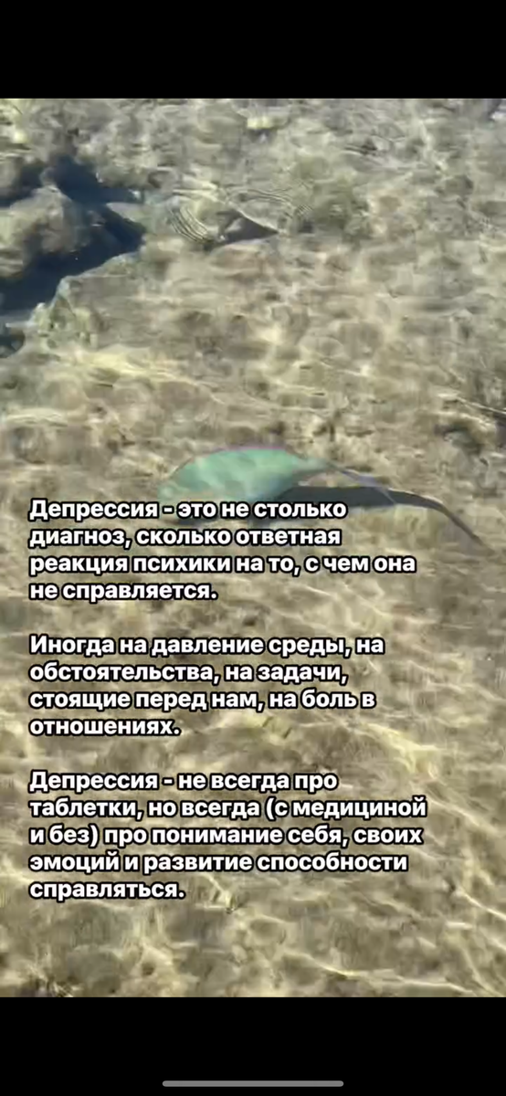 Депрессия - это не столько диагноз, сколько ответная реакция психики на то, с чем она не справляется. Иногда на давление среды, на обстоятельства, на задачи, стоящие перед нам, на боль в отношениях. Депрессия - не всегда про таблетки, но всегда (с медициной и без) про понимание себя, своих эмоций и развитие способности справляться.