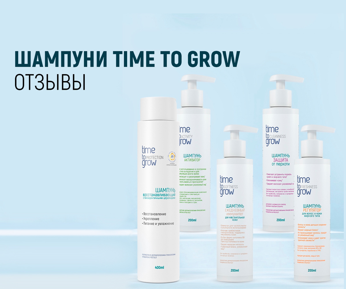 “После мытья ощущение комфорта - отсутствует зуд, раздражения, воспаления, а волосы мягкие и гладкие” - так отзываются наши дорогие покупатели о шампунях Time to grow. И для нас это лучшая награда!