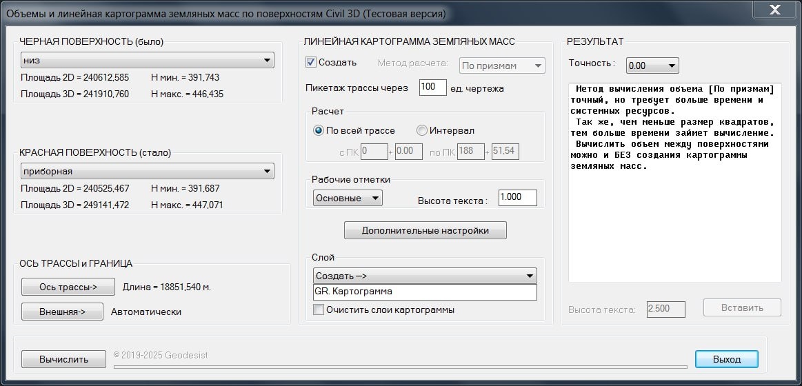 Обновление GeoRandom 5.7.0 + Объемы и линейная картограмма земляных масс Первая, тестовая версия. Пока только для AutoCAD Civil 3D 2013-2026. В работе Расчет: Интервал. Таблица с объемами размером более 50 строк (трасса > 5 км.) заполняется долго ~ 2 мин., трасса 20 км. ~50 мин., особенность работы AutoCAD с таблицами, решение данной проблемы - в работе. + Работа над ошибками 🫣 + Оптимизация 🤔