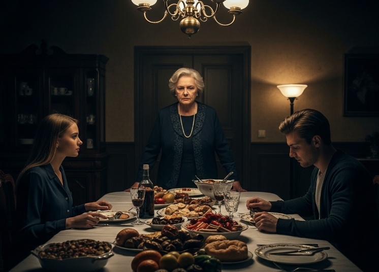 Стол ломился от еды, словно готовились не к знакомству, а к последней трапезе. Жирный плов, баклажаны с чесноком, три салата, щедро сдобренные майонезом. Галина Андреевна двигалась как жрица в своем храме, раскладывая еду по тарелкам. Себе она налила чай в старую, покрытую сеточкой трещин чашку.