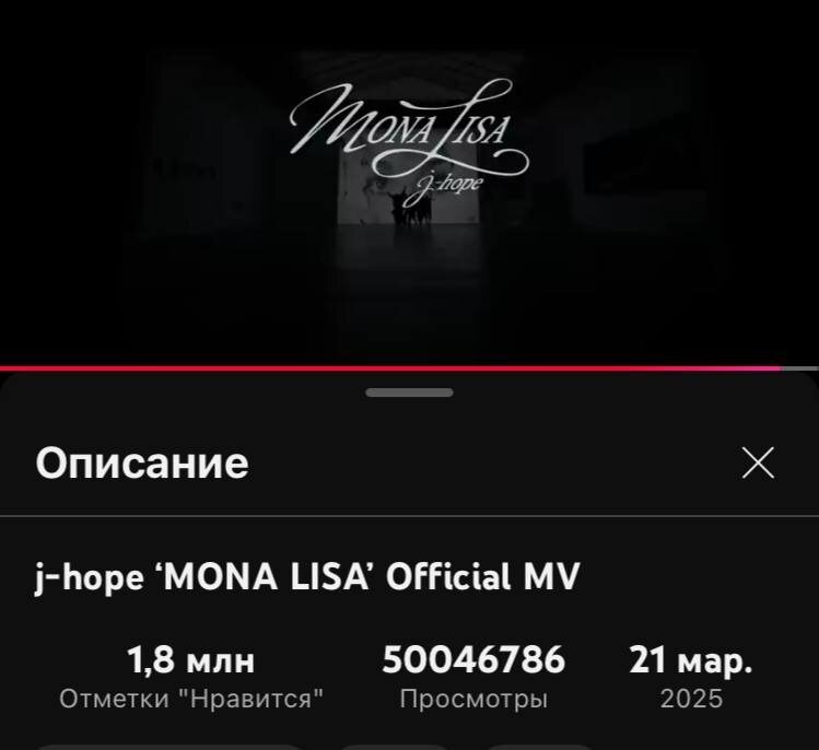 🌺 Клип на песню "Mona Lisa" набрал 50 миллионов просмотров на YouTube. #JHOPE @kumihobts