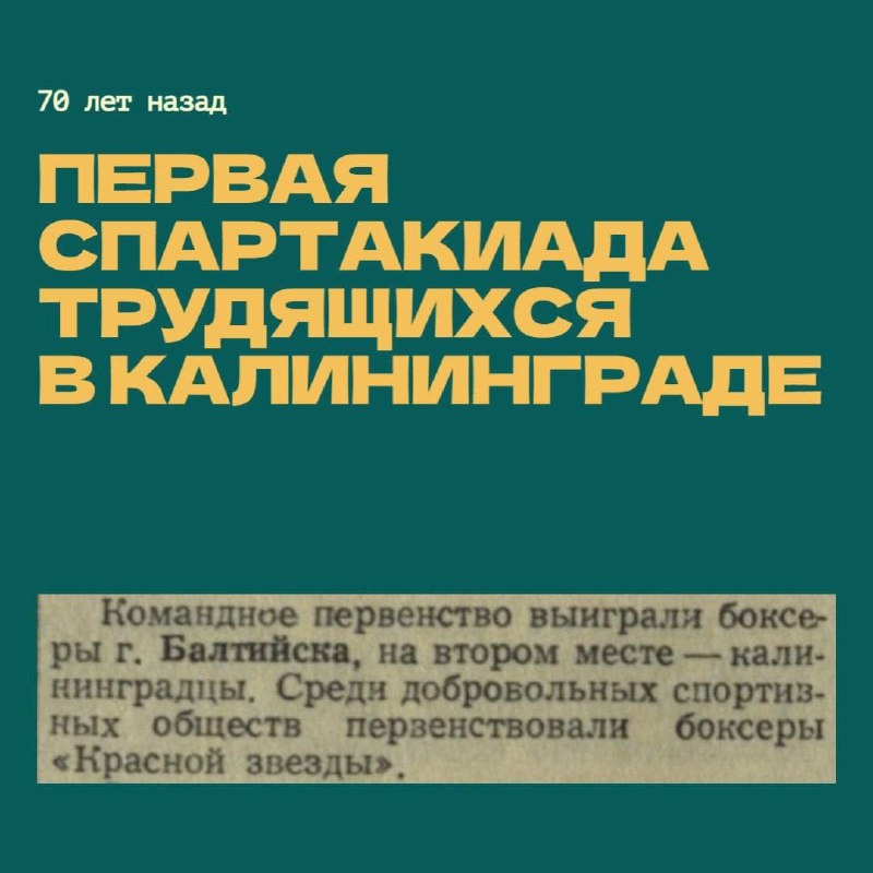 Вычитал интересный исторический факт о калининградском боксе. Спешу поделиться с вами! 70 лет назад, с 17 по 20 июля 1955 года, в Калининграде прошла первая областная спартакиада трудящихся. Об этом в своём сообществе написал госархив Калининградской области. В финале спартакиады участвовали 1,5 тысячи физкультурников городов и сёл Янтарного края. Они демонстрировали свои успехи в баскетболе, волейболе, велогонке, лёгкой атлетике, пулевой стрельбе, плавании, тяжёлой атлетике, спортивной гимнастике и боксе. Соревнования по боксу проходили в парке культуры и отдыха имени Калинина (ныне Центральный парк культуры и отдыха). Первое место заняла команда Балтийска. В Балтийске бокс по-прежнему популярен, в том числе благодаря тренеру Станиславу Рафеенко. Он действующий военнослужащий, участвовал в спецоперации, награждён медалью Суворова. В городе с сильными военно-морскими традициями, где всегда ценились мужество и отличная физическая подготовка, не может быть по-другому. Подопечные Стан