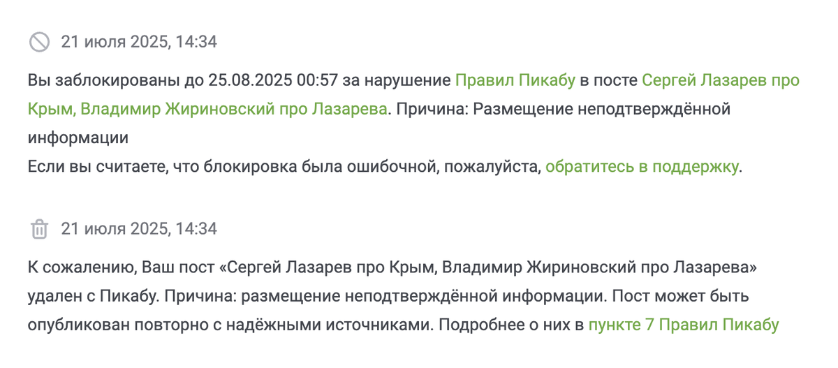 Сергей Лазарев про Крым, Владимир Жириновский про Лазарева именно так назывался ролик, который мне сегодня забанили на ПИКАБУ: Это просто фрагмент моей беседы с Жириновским (эфир федерального канала, на минуточку). Плюс цитата из интервью самого певца. Что там требуется подтверждать? Вот что? Что ПИКАБУ – заукраинский ресурс? Так это секрет Полишинеля, там хлопцы даже и не шифруются особо. Просто Лазарев то переобулся, поёт с ШАМАНом, и вроде служивые из ЦИПСО уже не должны впрягаться за своего заукраинца? Но нет, видимо, не всё так просто.