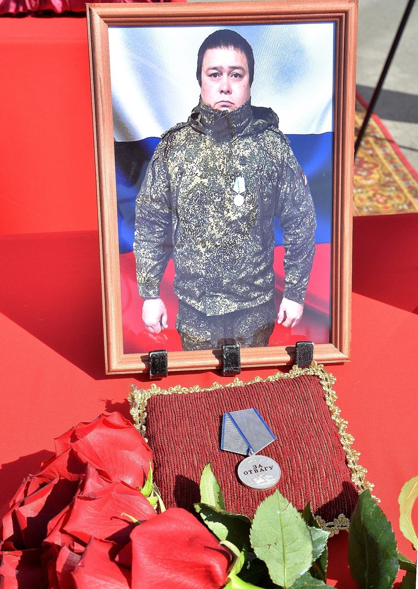 Сегодня в г.Учалы простились с участником специальной военной операции, младшим лейтенантом Амировым Рафаэлем Рашитовичем, геройски погибшим