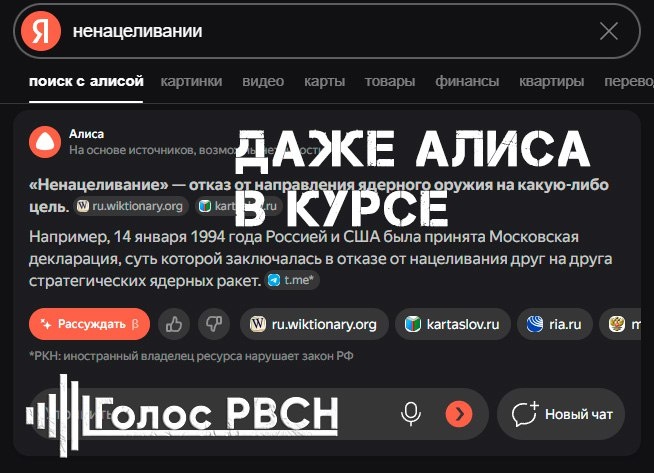 Даже Алиса в курсе Нужно определиться, как мы будем жить: по международному праву 1945 года, где наши границы незыблемы, или по косовскому прецеденту, где можно предложить Аляске войти в состав России. Последний путь, естественно, сопряжен с бесконечной войной всех со всеми. У многих стран есть больные точки. Парадокс заключается в чем? Ранее Каталония хотела выйти из состава Испании, так Россия не поддержала её, руководствуясь международным правом 1945 года и Хельсинским актом 1975 года. Тем временем мы по косовскому прецеденту присоединили Крым, а недавно и еще пару областей и республик. В глазах западного однополярного мира, а именно такой сейчас, мы агрессоры, которые ведём захватнические войны. Скорее всего, только по этой причине у нас до сих пор не вошли в состав России Харьков с областью, Сумы и так далее. США создало ящик Пандоры с признанием Косово. Янки хотели побряцать оружием, и вот куда оно привело, к СВО и кучи других вооруженных конфликтов и столкновений, естественно