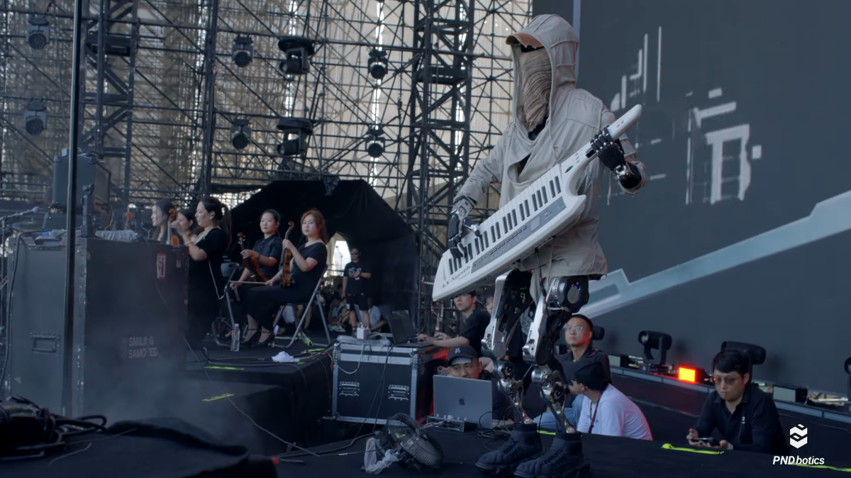 Во время выступления на фестивале VOYAGEX в китайском Чанчуне гуманоидный робот Адам показал необычные для машины навыки – он сыграл на клавишных инструментах с точностью и артистизмом, характерными для настоящих музыкантов. Робот ростом 1,6 метра и весом 60 кг продемонстрировал сложную координацию движений во время исполнения музыкальной партии. Его пальцы точно нажимали нужные клавиши, а корпус плавно раскачивался в такт музыке, создавая впечатление живого исполнения. Технологическую основу музыкальных способностей Адама составляют 25 запатентованных приводов QDD с точным контролем усилия. Они обеспечивают плавность движений, сравнимую с человеческой. Ноги робота развивают крутящий момент до 360 Н•м, что позволяет сохранять устойчивость во время игры. Разработчики из PNDbotics использовали передовые алгоритмы глубокого обучения с подкреплением. Система училась на обширных наборах данных, включающих записи человеческих движений. Это позволило роботу не только точно воспроизводить ноты