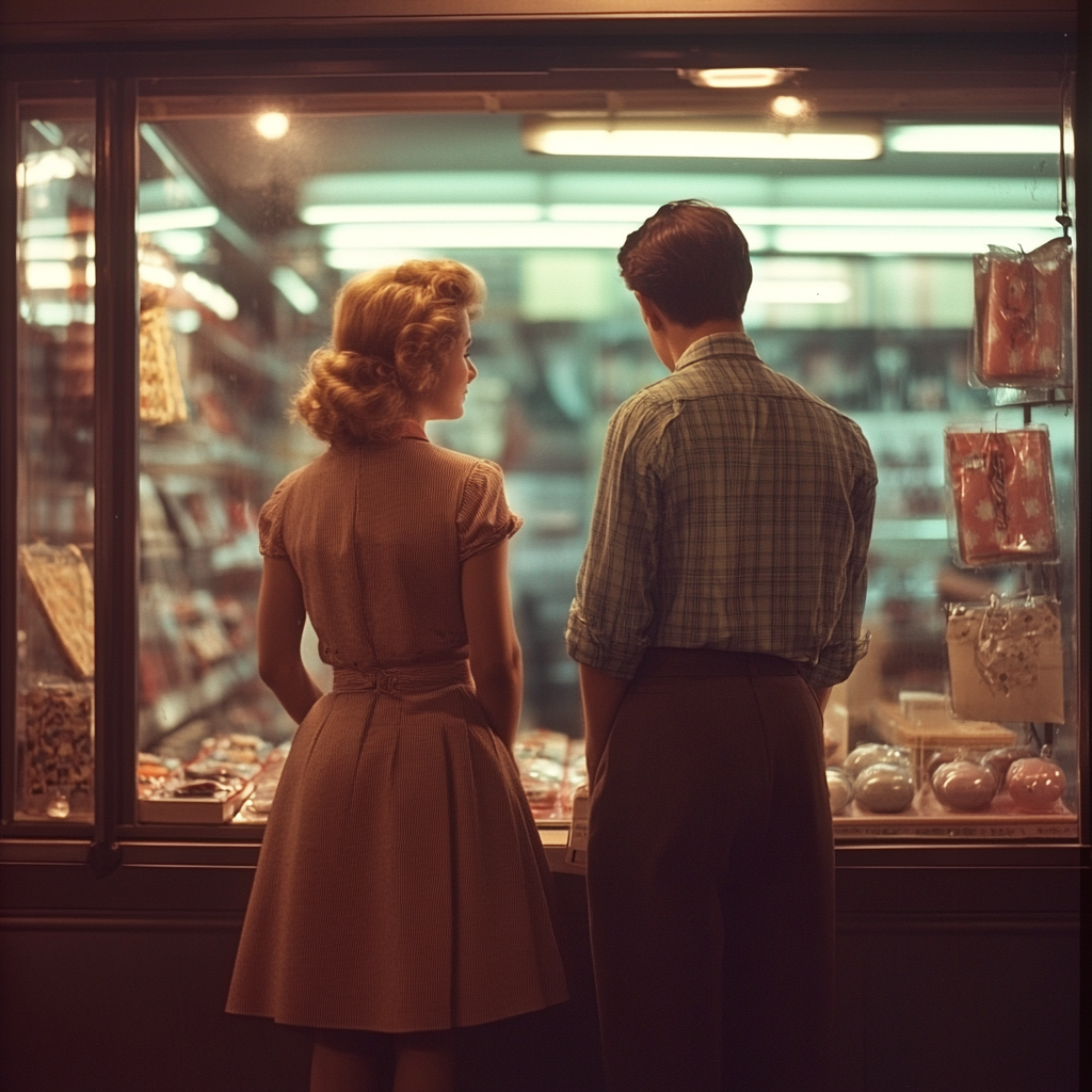 Ностальгические фильмы 50-60х годов создали культ уютных торговых пространств с теплыми тонами и классическими формами. Деревянные витрины с медными элементами, клетчатые полы, неоновые вывески — этот стиль до сих пор популярен в кафе и небольших магазинах.
