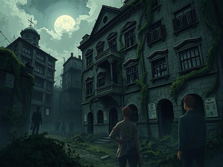 Тени заброшенного города В небольшом городке, окружённом густыми лесами, жили два друга — Саша и Лёха. Они были увлечёнными путешественниками и блогерами, всегда искали новые приключения и необычные места для своих видео. Однажды, после долгого дня съёмок в окрестностях, их машина сломалась на старой, заброшенной дороге, ведущей к легендарному городу, о котором ходили слухи, что он скрывает множество тайн. Саша, всегда более любопытный, предложил Лёхе прогуляться до города, чтобы снять несколько кадров для блога. Лёха, хоть и не был в восторге от этой идеи, согласился, поддавшись уговорам друга. Они оставили машину и начали свой путь по заросшей тропинке, которая вела вглубь леса. С каждым шагом атмосфера становилась всё более гнетущей. Деревья, казалось, шептали, а в воздухе витал странный запах, словно что-то было не так. Вскоре они вышли на поляну, где находились остатки старых зданий, обросших мхом и лианами. Город выглядел так, будто его покинули всего несколько дней назад, хотя н