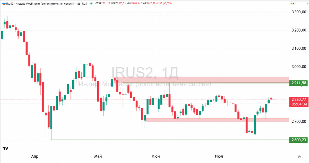 Итоги дня неоднозначные, индекс МосБиржи закрывается на 2820. Так никуда и не сдвинулся с открытия дня сегодня.