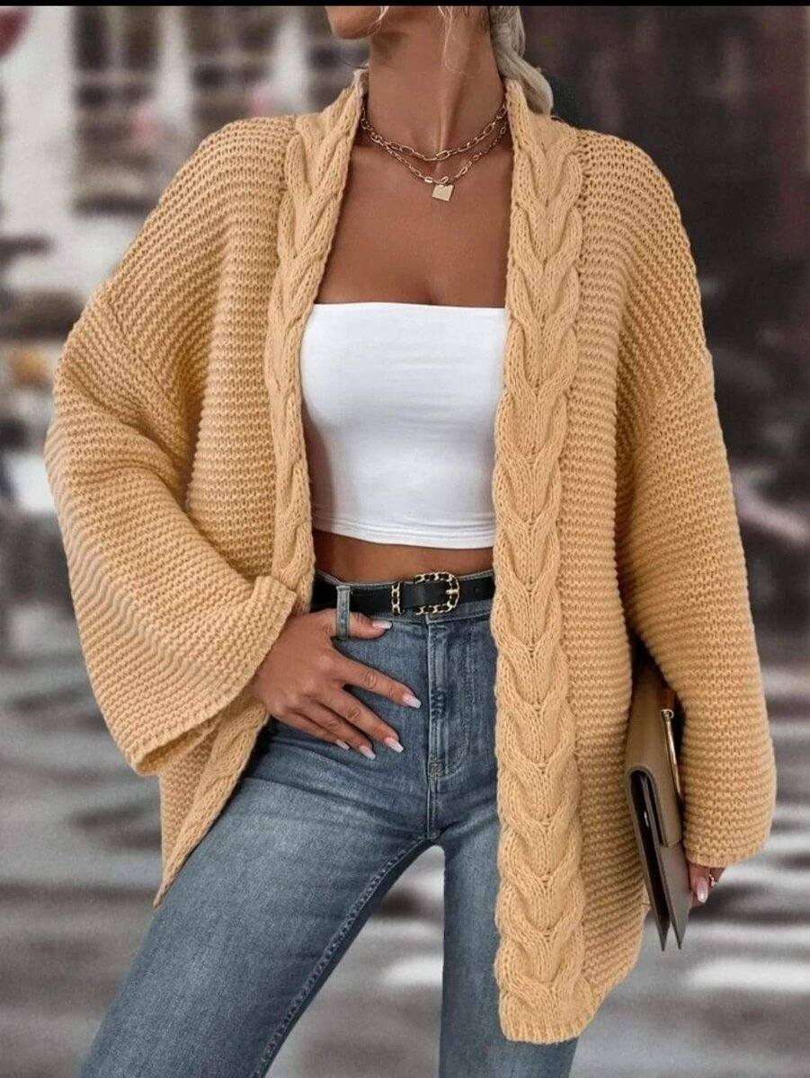 В интернете не удалось найти описание, да и не искала особо. Давайте внимательно рассмотрим фотографию. Что можно понять? Мы видим, что вязка простая, изнаночная гладь, затем все элементы связаны отдельно. А что с планкой? Есть два варианта: В этом изделии я бы выбрала первый вариант. Потому что полотно кажется тяжёлым, это заметно даже на вид. Что ещё можно сказать? Пряжа скорее всего 100-граммовая, от 220 до 110, возможно, бобинная, в несколько сложений. Спицы нужны от 5. Осталось связать образ, найти узор с аранами, сделать расчёты и выкройку. И можно приступать к работе. Удачи всем!