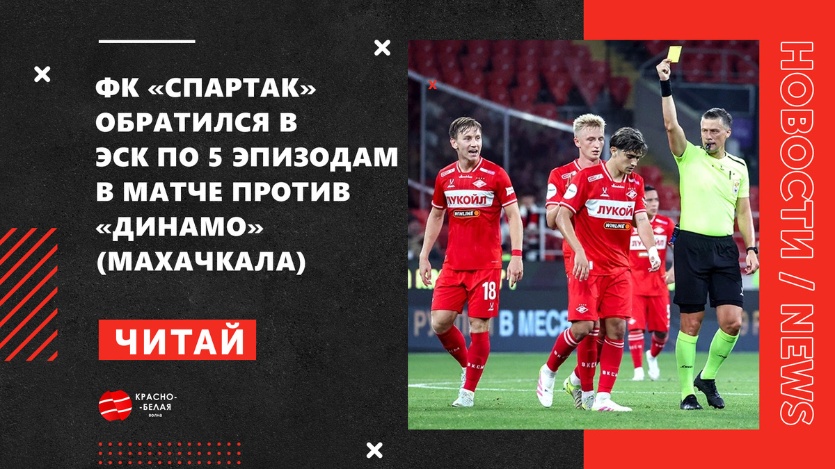 Как сообщает официальная пресс-служба красно-белых, клуб обратился в Экспертно-судейскую комиссию при президенте РФС по пяти эпизодам в матче «Спартак» - «Динамо» (Махачкала):