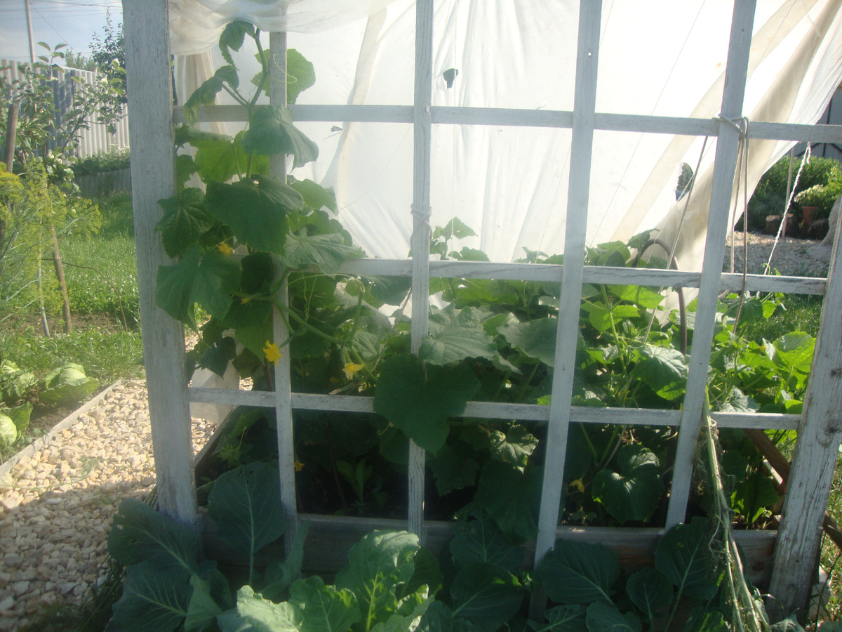 Огурцы же, что любят? Тепло, влагу и простор! Ну, тепла у нас в изобилии, влагой мы их обеспечиваем, а вот ,где же я им возьму простора?