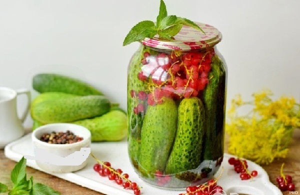 Если вы любите своих родных, то обязательно закатаете на зиму хотя бы парочку банок огурцов с красной смородиной – пусть порадуются. Заготовка получится невероятно нарядной и аппетитной, а сами овощи становятся необычными — снаружи зелеными, а внутри розовыми. Ягоды редко используются в подобной консервации, но с огурцами сочетаются великолепно. Овощам передается легкая кислинка смороды, они становятся хрустящими и упругими.