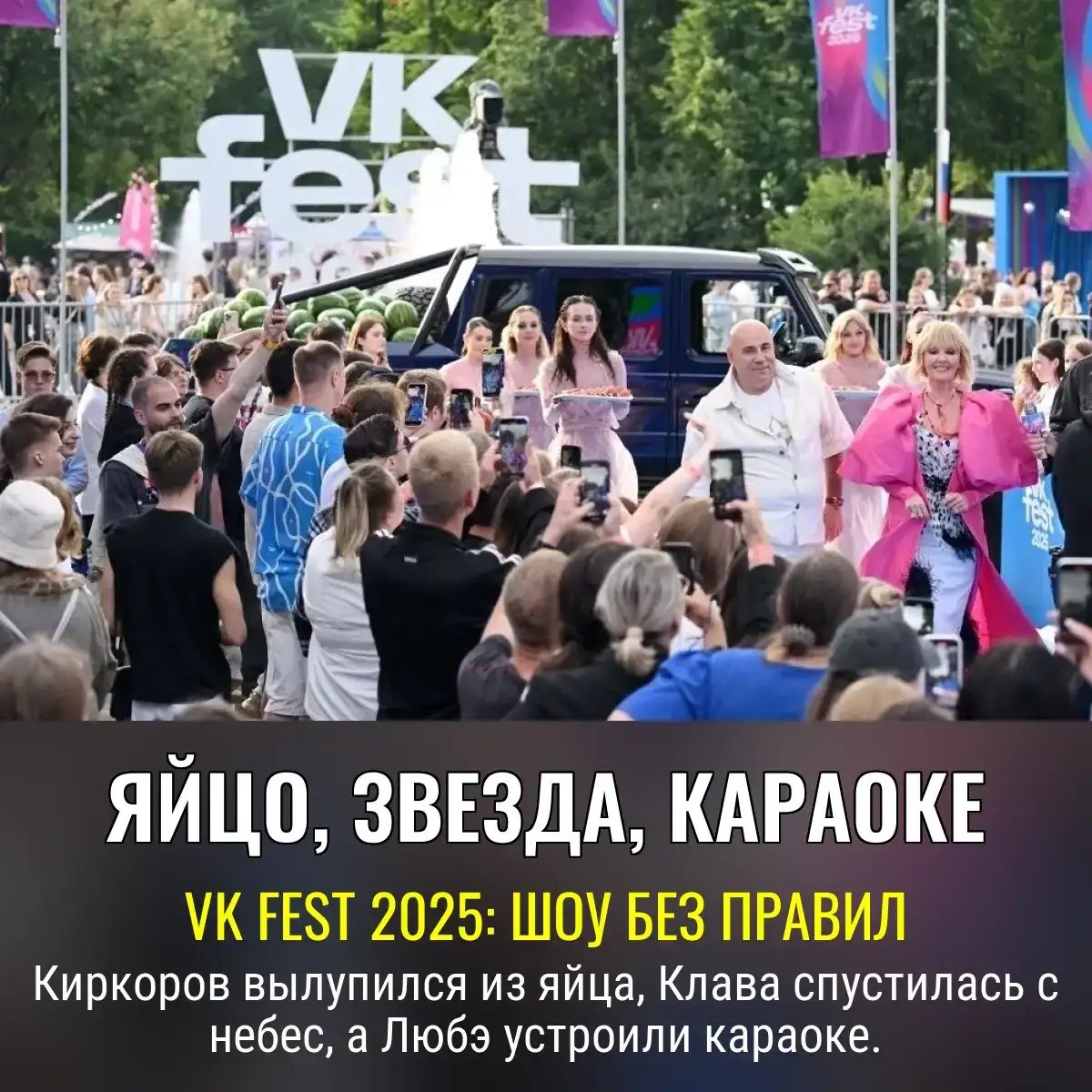 Киркоров превзошёл себя: эпично появился в Лужниках в синем костюме и с золотым яйцом, из которого "вылупилась" певица Марго. Клава Кока пролетела над толпой на металлической звезде — держалась за неё одной рукой, словно буднично за поручень в маршрутке. Собчак и Шаляпин подняли градус безумием на синей дорожке. Оксана Самойлова с Джиганом приехали на телеге с сеном. Дресс-код: плюшевые чебурашки, драконий латекс и дырявые джинсы от SHAMAN (для тех, кто устал от гламуру). Финал: стадион срывает голос за "Любэ"., Следите за новостями 📩