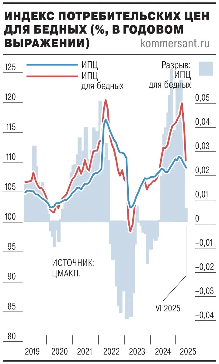 ЦМАКП фиксирует сближение уровней инфляции с оптимистичным выравниванием Эксперты ЦМАКП порадовали новостью: инфляция для бедных замедлилась до 10,5%, приблизившись к общей инфляции в 9,4%! Хотя в июле возможны новые скачки цен на ЖКХ, дефляция на продукты радует. Потребление тоже оживает, так что, вроде бы, всё не так уж и плохо, ура! 📢 Подробнее: uralnovosti.ru 🏞 Фото автора: www.kommersant.ru 📢 Подписывайтесь на наш канал: uralnovost