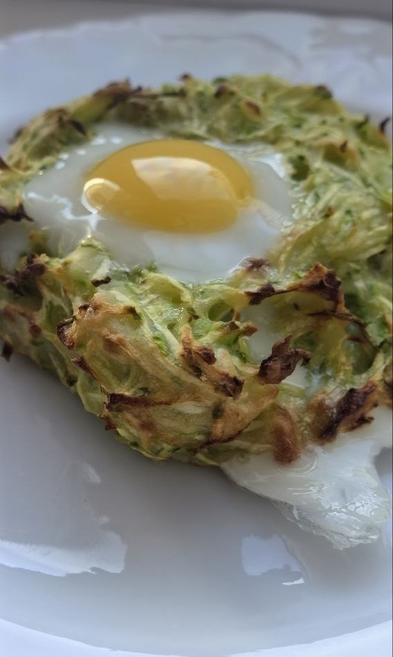 Кабачковые оладьи-гнёзда с перепелиным яйцом в духовке
