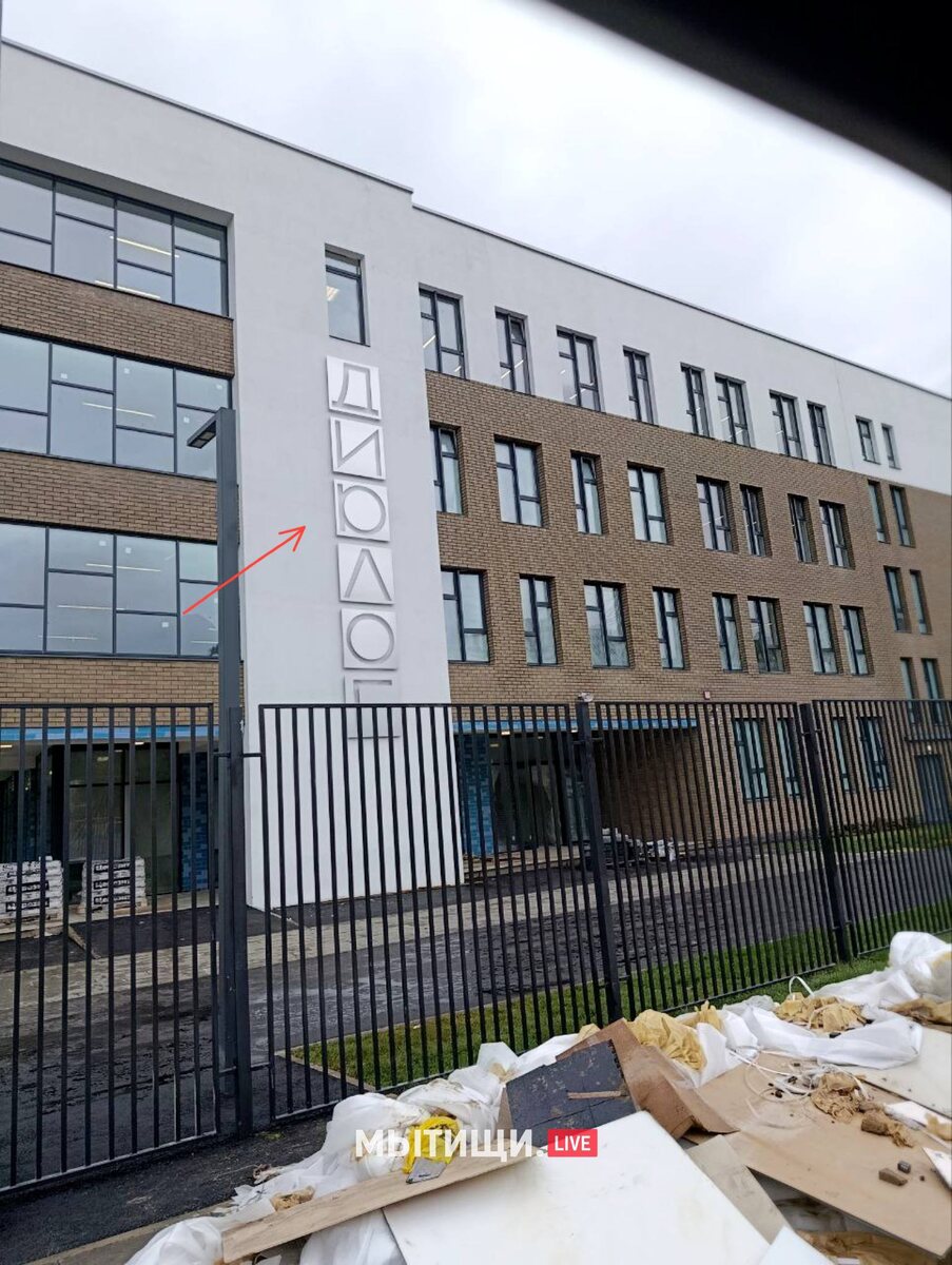 ❌ На фасаде новой школы в ЖК "Мытищи Парк" появилась забавная опечатка - строители перевернули букву "А", превратив "Диалог" в "Диюлог