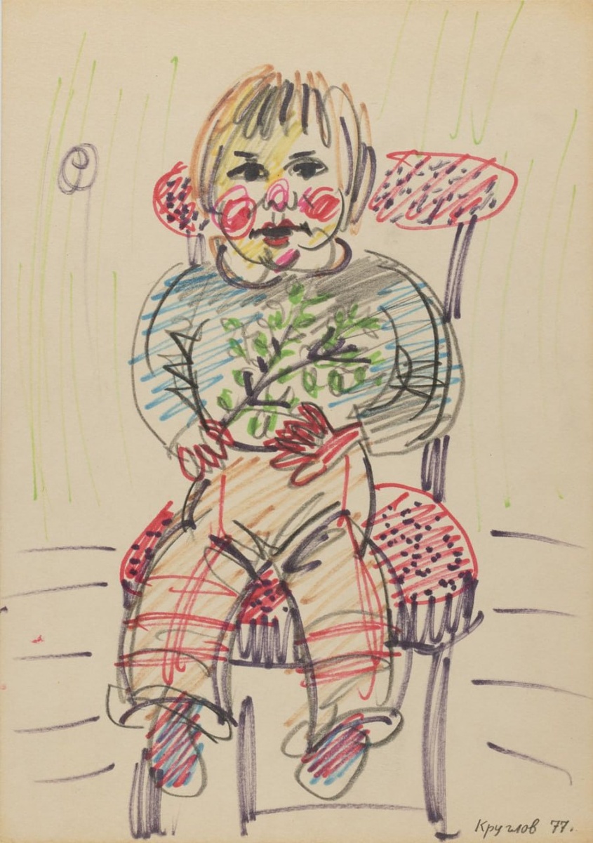 Девочка с персиками? А может лучше девочка с веткой? 🌿 ЛОТ 452 в эту субботу на нашем аукционе — Круглов А. С. Девочка с веткой. 1977. Бумага, карандаш, фломастеры.